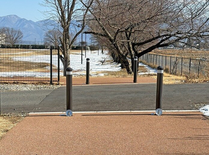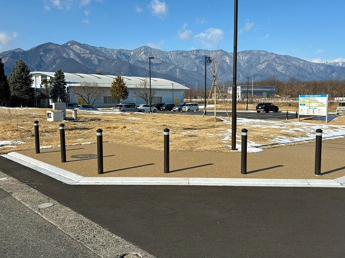 長野県松本市にある扇子田(せんすだ)公園は、2025年リニューアルが工事が完了し、広大な敷地の中に3人制のバスケットボール場やスケートボード場、ラジコンコースなど新設されました。松本市内の複合的な運動公園としては最大規模です。周囲に建物がなく自然の中で楽しめる素晴らしいロケーション。駐車場も180台分が確保され、公園内の安全対策として耐衝撃性車止めハイパーボラード HYP-01A(PK)が設置されました(NETIS KT-210038-VE)。