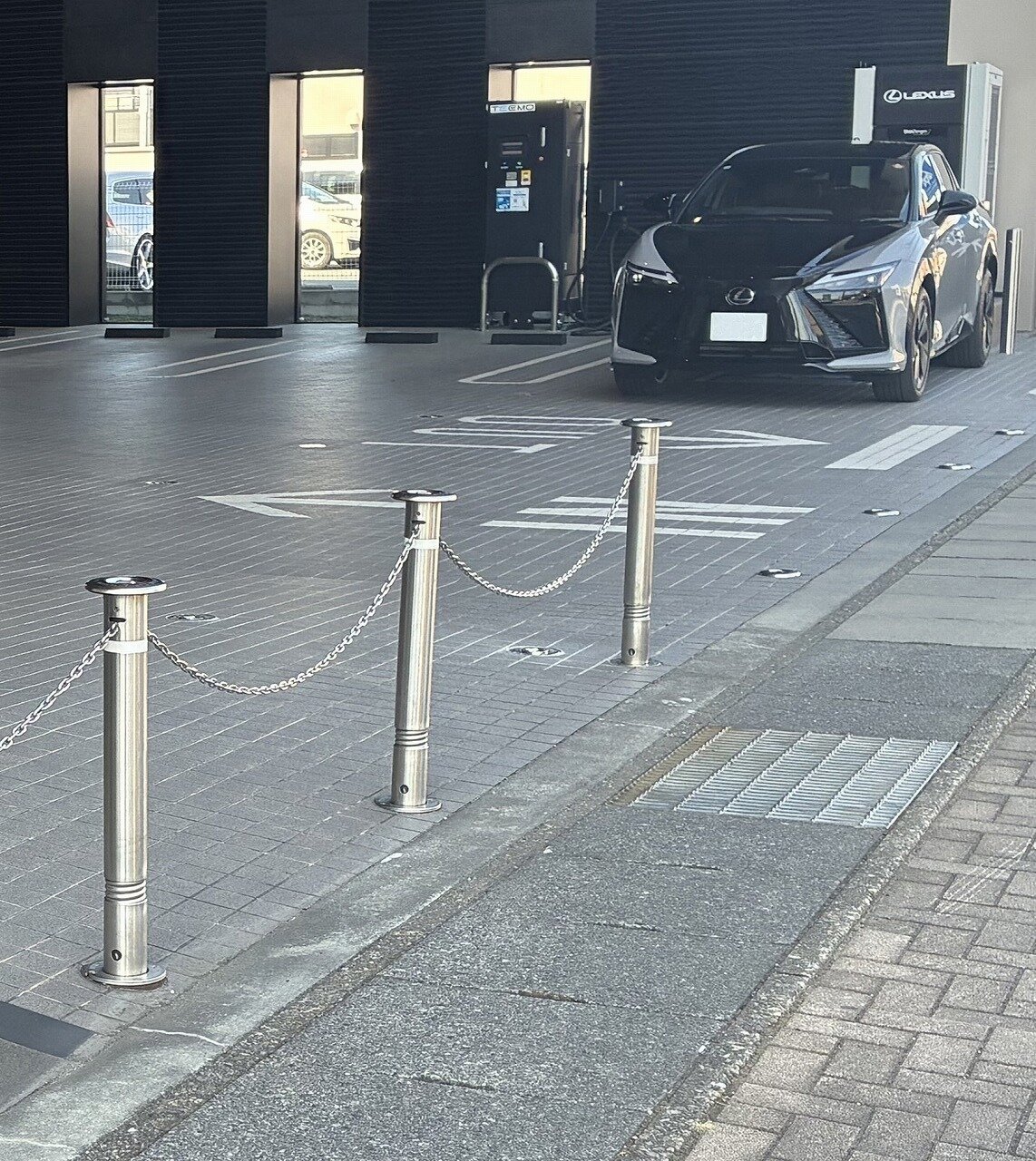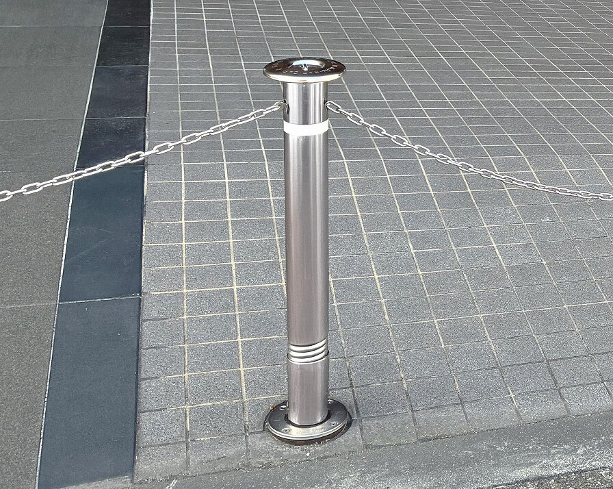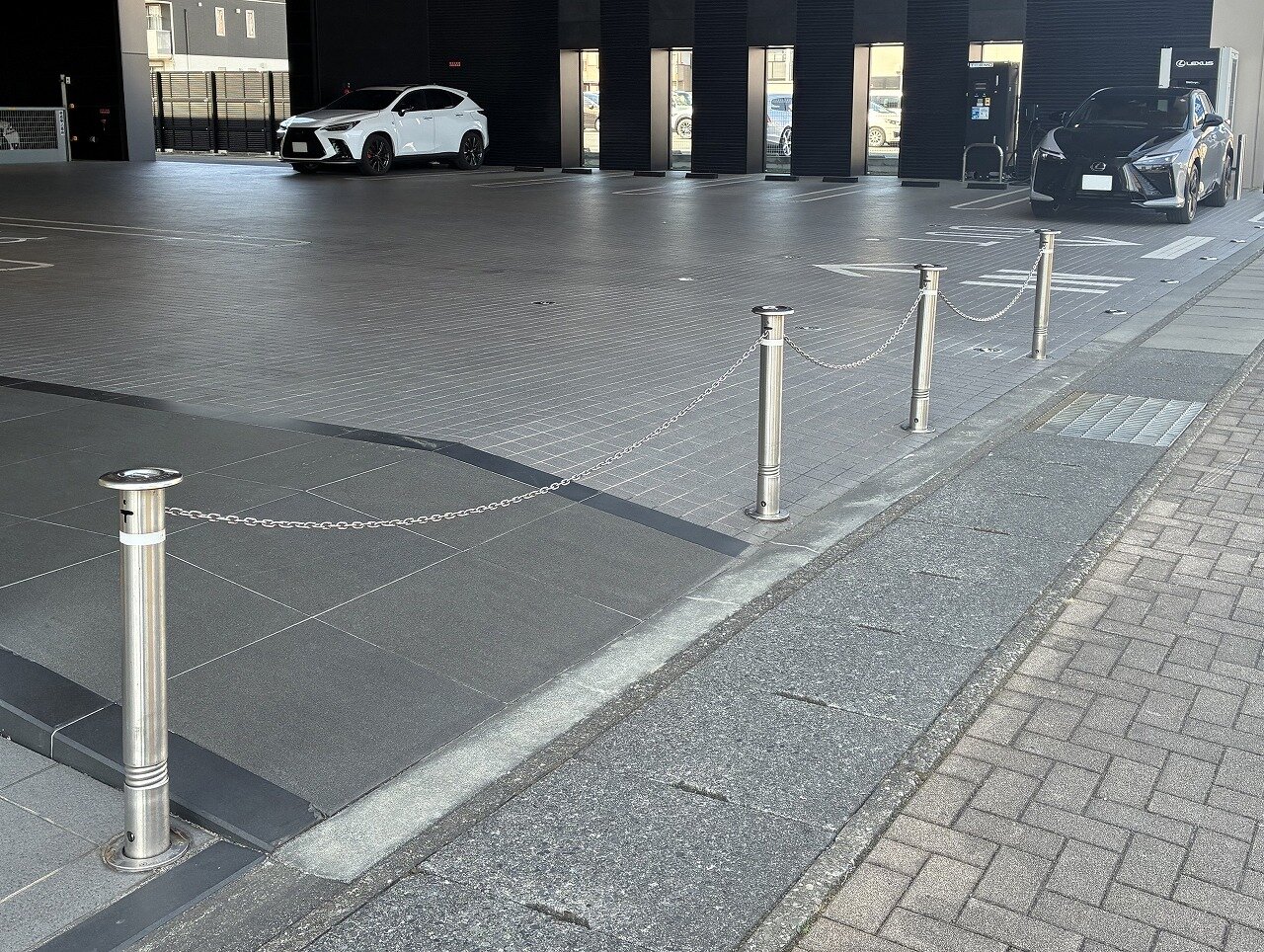 高級車ブランド・レクサスの店舗に帝金の代名詞「上下式バリカー」をご採用いただきました。上部のキャップにより、支柱ケース底部に隙間と逃げ口を確保しているため、土砂や雨水が浸入する場所でも安心して設置できます。収納時はキャップにより土砂・雨水をガード。砂地や公園などのような場所でも幅広く使用できます。設置推奨場所は、公園・駐車場出入口等です。また、クサリを出し入れする時の金属音を抑制する静音装置が常備されていて、朝晩でも近所迷惑にならず、安心して操作いただけます。